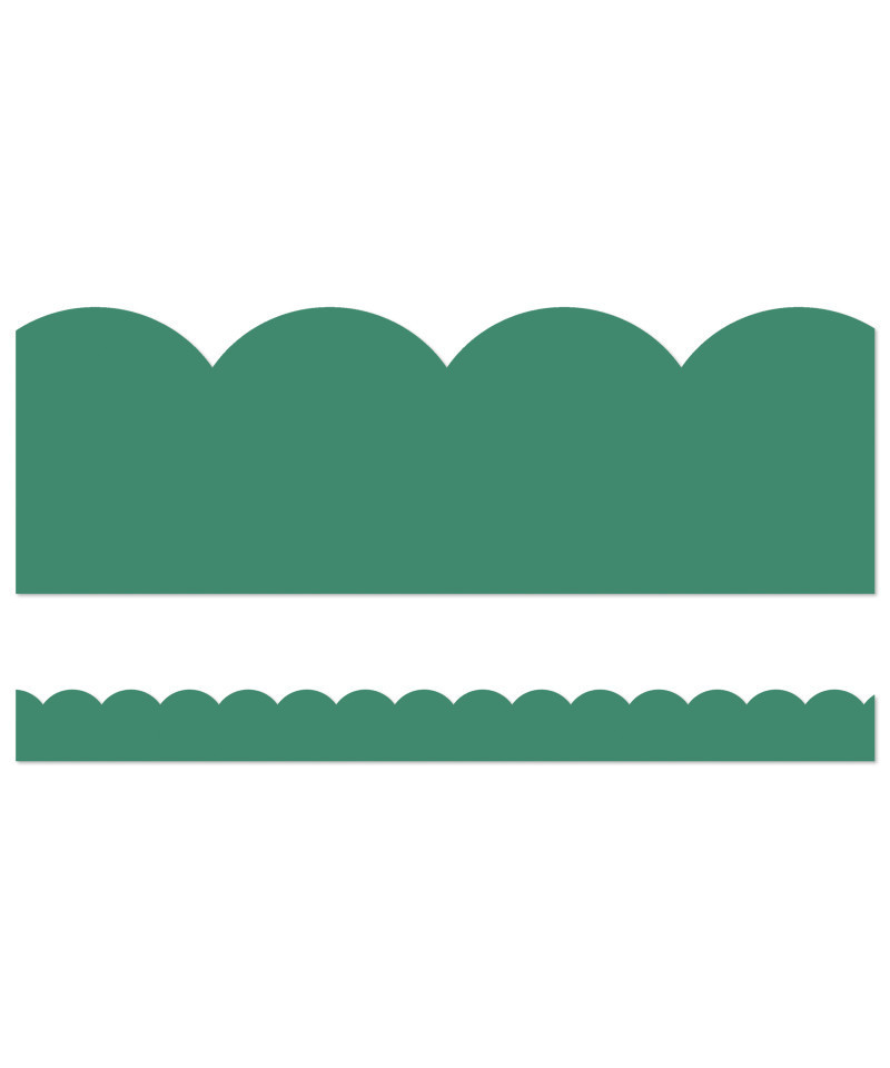 Cultivate a peaceful classroom with the natural touches in the Carson Dellosa Grow Together Jade Green Bulletin Board Borders! Featuring 13 strips of modern, scalloped bulletin board borders, each bulletin board border strip measures 3 feet x 3 inches for a total of 39 feet—perfect for white board, cork board, and other colorful décor needs. Cut and layer the bulletin board border to add dimension to any display with ease. Add green bulletin board borders to locker and desk décor, and other classroom décor or office décor, or incorporate into spring and summer bulletin board decorations for stylish seasonal displays.