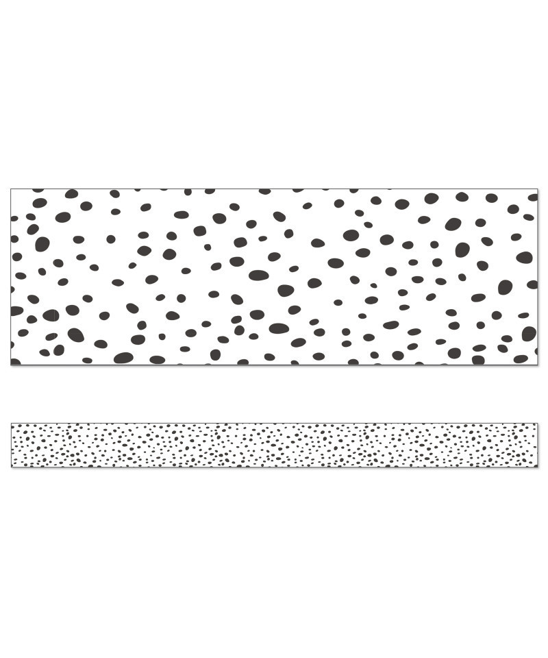 Add stylish, black and white classroom decor to your learning space using Carson Dellosa We Belong Black Dot Bulletin Board Borders—perfect for bulletin board, white board, cork board, and other classroom décor. The black and white bulletin board paper set includes 12 strips of straight, white bulletin board borders with a black leopard print design throughout each strip of border. Each strip of bulletin board border measures 3' x 3" for a total of 36 feet to decorate doors and wall displays, cubbies, chalkboards, and other border needs. White and black décor is a great addition to year-round party, black board, and bulletin board decorations, office décor, locker, desk décor, and more.