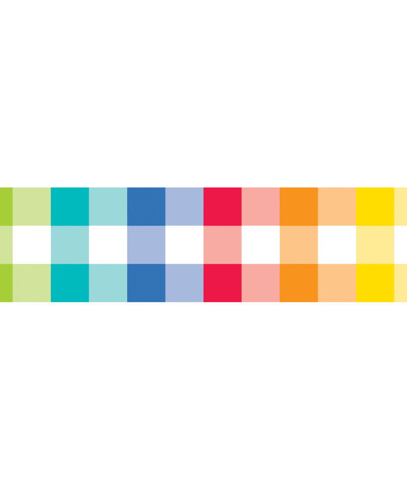 The bright and colorful Rainbow Buffalo Check EZ Border can be used by itself to liven up any wall display or layered with another border. Mix and match for a unique look. Perfect for use on bulletin boards in a wide variety of classroom, office, and school settings. These EZ borders come in smaller strips, which are easier to manage and store. Each package comes with enough borders to complete 2 full bulletin boards. Strips measure 3" x 24". Each pack includes 24 strips for a total of 48 feet.