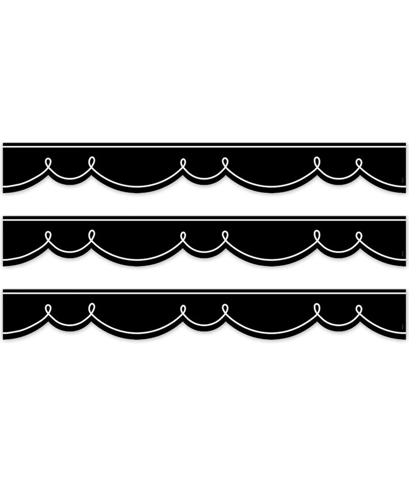 This stylish Doodle Swirl EZ Border features a curvy, looping white line on a black background. Use it by itself or layer it with another border for a unique look. Perfect for use on bulletin boards in a wide variety of classroom, office, and school settings. These EZ borders come in smaller strips, which are easier to manage and store. Each package comes with enough borders to complete 2 full bulletin boards. Strips measure 3" x 24". Each pack includes 24 strips for a total of 48 feet. Sold as 3 packs for a total of 72 strips (144 feet).