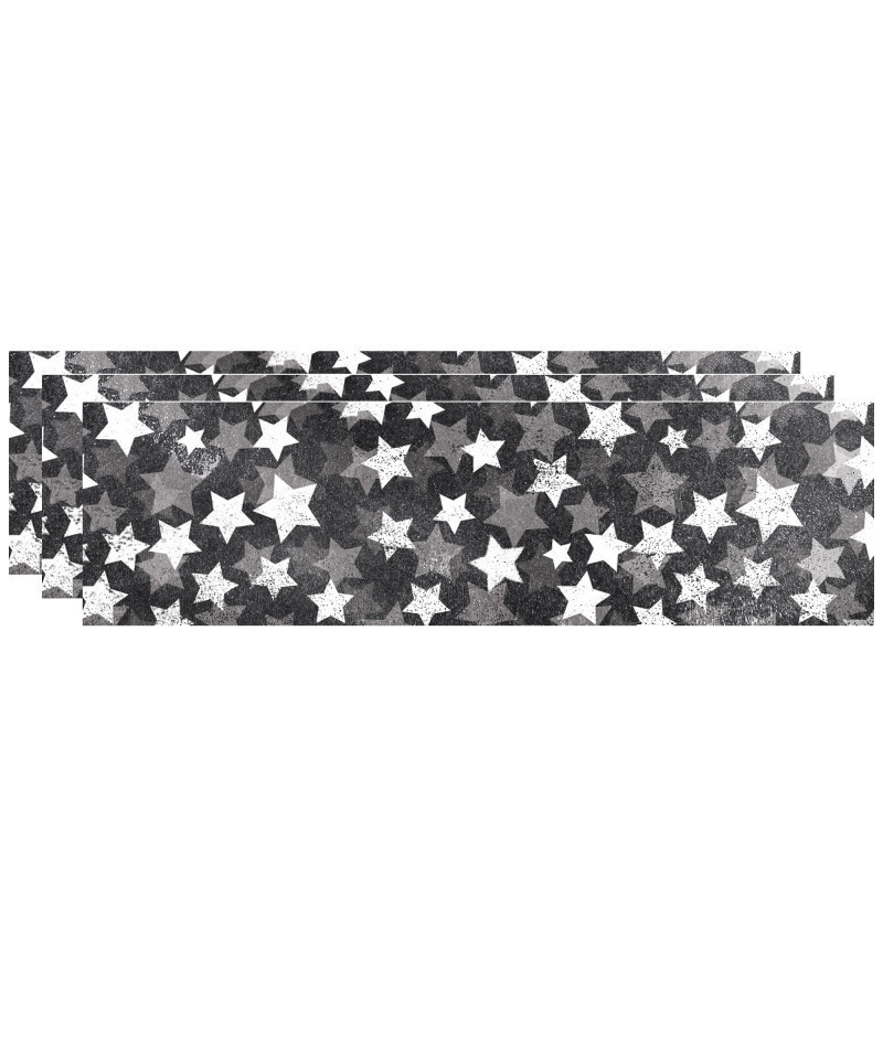 Recognize all-star student achievement by framing displays of student work with the Chalk Stars EZ Border. This border features playful stars on a chalk-style background. Perfect for use on bulletin boards in a wide variety of classroom, office, and school settings. These EZ borders come in smaller strips, which are easier to manage and store. Each package comes with enough borders to complete 2 full bulletin boards. Strips measure 3" x 24". Each pack includes 24 strips for a total of 48 feet. Sold as 3 packs for a total of 72 strips (144 feet).