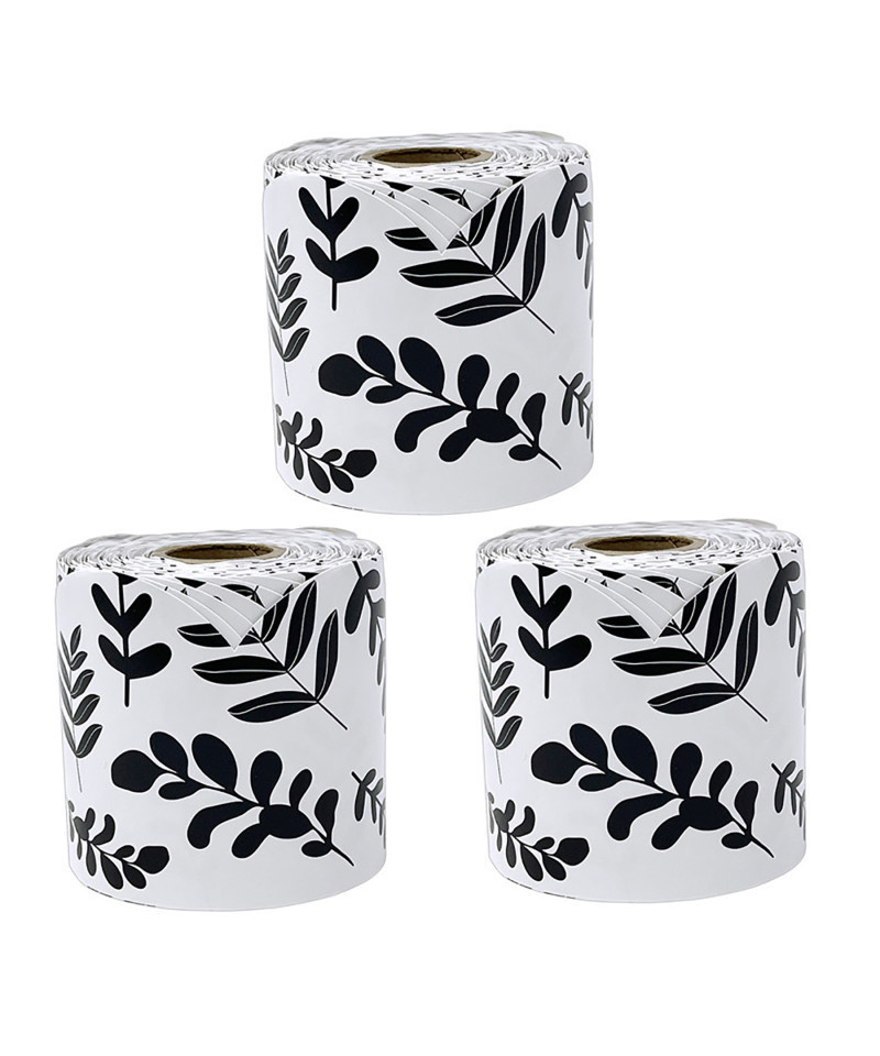 Add the perfect finishing touches to your modern farmhouse décor using Carson Dellosa's Farmhouse Black and White Leaves Bulletin Board Borders. The roll of scalloped, white and black border features a classically chic leafy design and measures 65 feet x 3 inches—perfect for bulletin boards, white boards, cork boards, and other modern farmhouse classroom décor needs. Cut and layer the white and black bulletin board border to add dimension to any display with ease. Add the white and black bulletin board borders to locker and desk décor, and other modern farmhouse classroom décor or office décor for year-round charm that students will love. Sold as a pack of 3 rolls.
