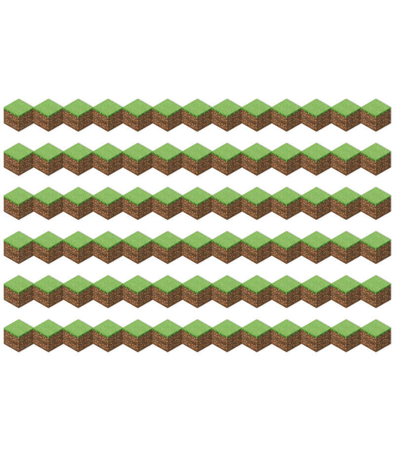 Use Eureka School Extra Wide Deco Trim® to add a finishing border to your displays, windows, doorways or chalkboards. Vibrant colors plus a variety of styles and themes can add creativity to displays, windows, chalkboards and more. Inspire creative, inclusive learning through play with the look of Minecraft in the classroom! Each pack includes 12 strips, each measuring 3-1/4" x 12" for a total of 37 feet! Sold as 6 packs for a total of 72 strips (222 feet).