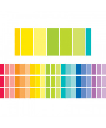 Use colorful border trim to liven up your classroom! Create fresh looks for bulletin boards, windows, walls, and class projects. Mix and match with coordinating products (stickers, notepads, awards, etc.) for a classroom theme. Each pack has 12 pieces (2-3/16" x 35") for a total length of 35 feet of trim! Sold as 6 packs for a total of 72 pieces (210 feet).