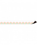 Decorate your whiteboard in a snap with durable, reusable magnetic decor! Add flair on other metal surfaces such as doors, desks, shelving, and bins. Cuts easily with scissors for the perfect fit. Each magnetic border measures 24" x 1-1/2". Each pack includes 12 pieces, 24 total feet.
