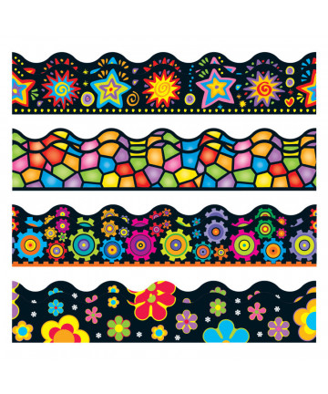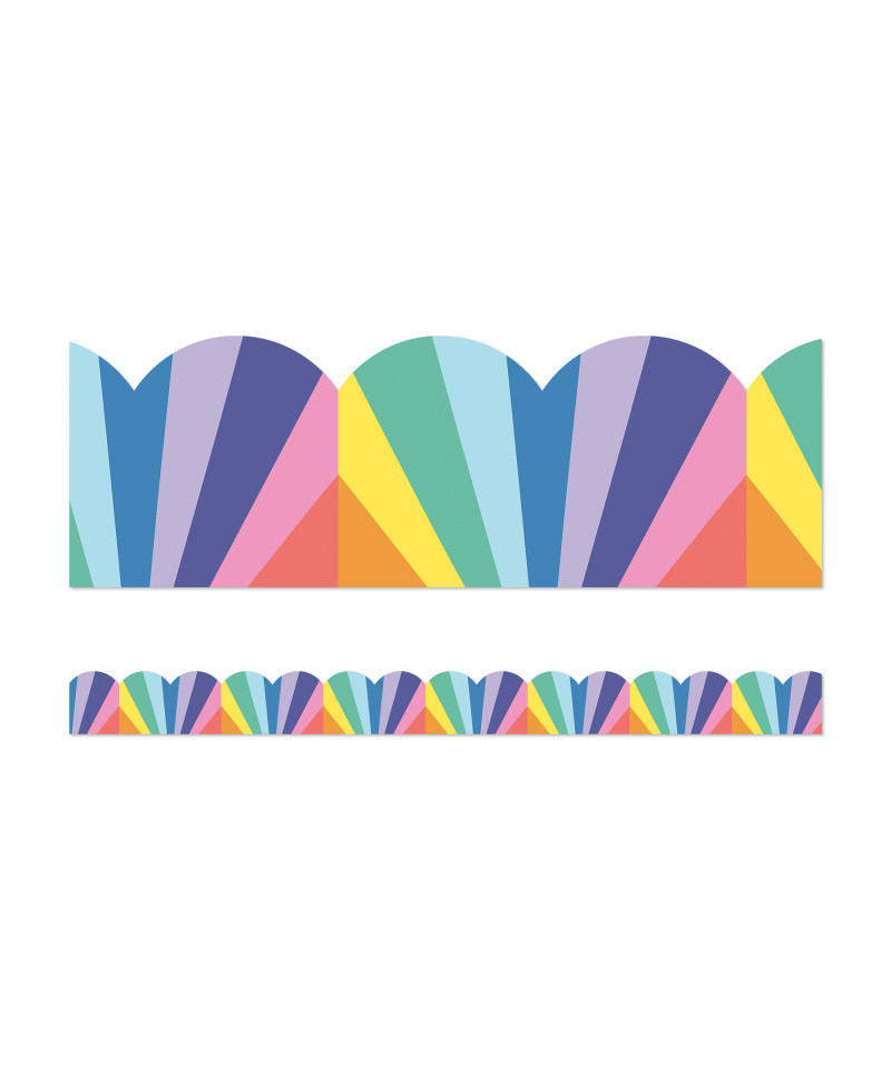 Decorate your bulletin board, cork board, white board, and other visual displays with Carson Dellosa's We Stick Together Rainbow Burst Bulletin Board Borders! Each pack featuring 13 strips of 3' x 3" scalloped border trim for a total of 39', this vibrant, rainbow bulletin board border is sure to brighten any space in your classroom with ease.