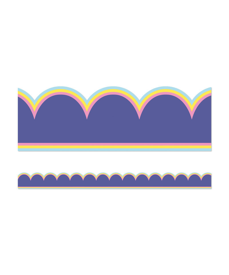 Add the perfect finishing touch to your bulletin board, cork board, white board, and other visual displays with Carson Dellosa's We Stick Together Purple Bulletin Board Borders! Each border pack features 13 strips of 3' x 3", purple scalloped border trim for a total of 39' to bring a rich pop of color to classroom décor and teaching supplies.