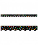 - EYE-CATCHING DESIGN – This border's colorful dots on a black background creates a dazzling look that will add vibrancy to any bulletin board display.