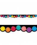 - FUN AND FESTIVE DESIGN – This border's rainbow of colorful pom-poms (pink, orange, red, turquoise, yellow, blue, and purple) on a black background will brighten any room.