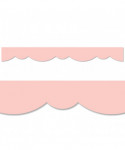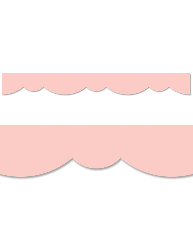 A fun, fresh twist on a solid border! This Blush Stylish Scallops Border features a playful double scallop design to create a neat and easy way to edge any bulletin board or classroom display. The light pink color is great for any grade level! Also great for use on bulletin boards in an office, a church, a college dorm, or a senior living residence. With its versatile scallop design, this bulletin board border can be used alone to create a basic look or layered with another border for a more designer look. These new EZ borders come in smaller strips, which are easier to manage and store. Each package comes with enough borders to complete 2 full bulletin boards. Each pack includes 24 strips measuring 2-3/4" x 24" for a total of 48 feet per package.