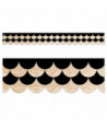 Add a touch of elegance to any display with this Black and Wood Scallops EZ Border. The alternating rows of black and wood-patterned scallops make for a vibrant way to trim bulletin boards anywhere! This EZ border comes in smaller strips, which are easier to manage and store. Each package comes with enough border to complete 2 full bulletin boards. Each pack includes 24 strips measuring 2-3/4" x 24" for a total of 48 feet per package.