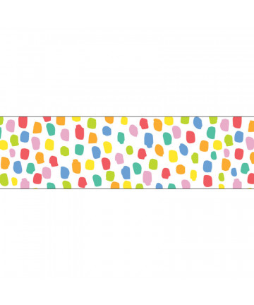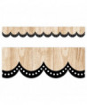 Trim your bulletin boards in style with this Dotted Scallops on Wood EZ Border. The border features a natural wood look with strands of white dots on a black background. This EZ Border comes in smaller strips, which are easier to manage and store. Each package comes with enough border to complete 2 full bulletin boards. Each pack includes 24 strips measuring 3" x 24" for a total of 48 feet per package.