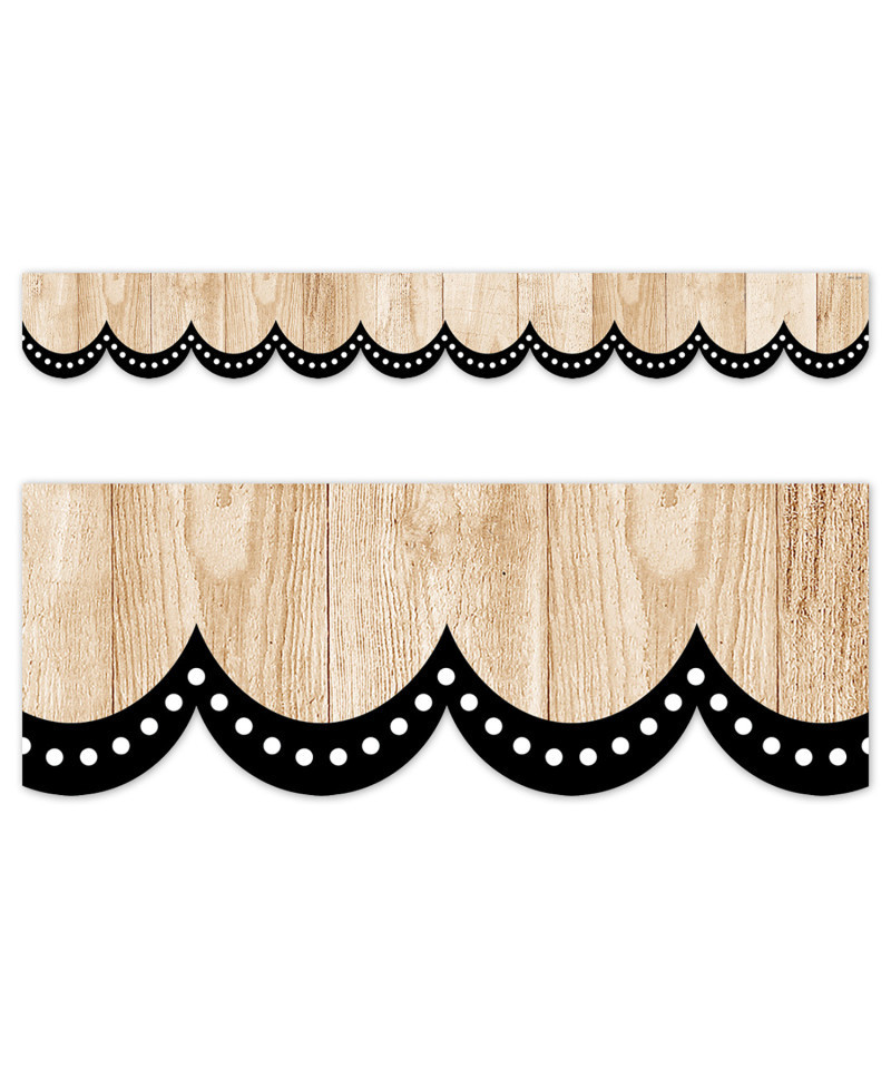 STYLISH DESIGN – This border features a natural wood look with strands of white dots on a black background that will add a touch of style to any bulletin board display.