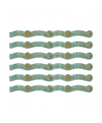 Use Eureka School Deco Trim® to add a finishing border to your displays, windows, doorways or chalkboards. Vibrant colors plus a variety of styles and themes can add creativity to displays, windows, chalkboards and more. Deco Trim® is printed on heavy weight cardstock and is reusable. Make a splash! Make your classroom turtley awesome with the Seas the Day collection. Cool ocean vibes, motivational phrases, marine life imagery, and vibrant colors make this theme easy to age up or down. Each pack includes 12 strips (each measuring 2-1/4" x 37") for a total of 37 feet.