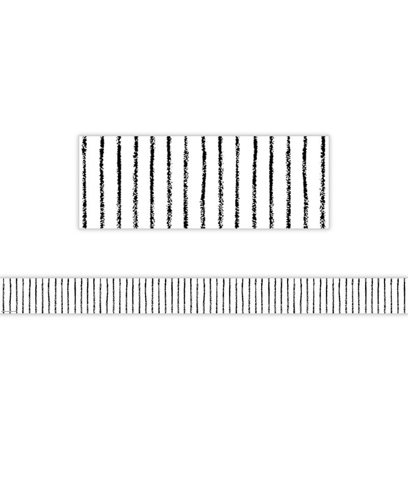 Use this white with black pinstripes border trim to liven up your classroom! Create fresh looks for bulletin boards, windows, walls, and class projects. Mix and match with coordinating products (stickers, notepads, awards, etc.) for a classroom theme. Each pack has 12 pieces (3" x 35") for a total length of 35 feet of trim!
