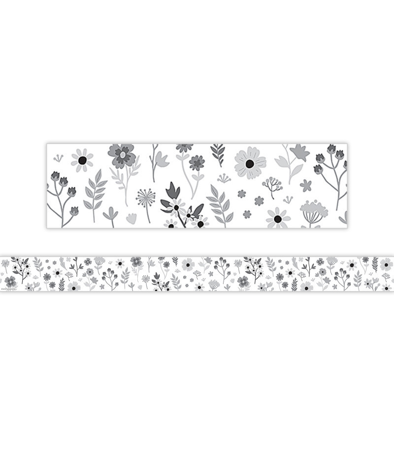 Use this black and white floral border trim to liven up your classroom! Create fresh looks for bulletin boards, windows, walls, and class projects. Mix and match with coordinating products (stickers, notepads, awards, etc.) for a classroom theme. Each pack has 12 pieces (3" x 35") for a total length of 35 feet of trim!