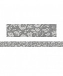 Use this gray floral border trim to liven up your classroom! Create fresh looks for bulletin boards, windows, walls, and class projects. Mix and match with coordinating products (stickers, notepads, awards, etc.) for a classroom theme. Each pack has 12 pieces (3" x 35") for a total length of 35 feet of trim!