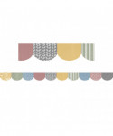 Use this classroom cottage scalloped border trim to liven up your classroom! Create fresh looks for bulletin boards, windows, walls, and class projects. Mix and match with coordinating products (stickers, notepads, awards, etc.) for a classroom theme. Each pack has 12 pieces (3" x 35") for a total length of 35 feet of trim!