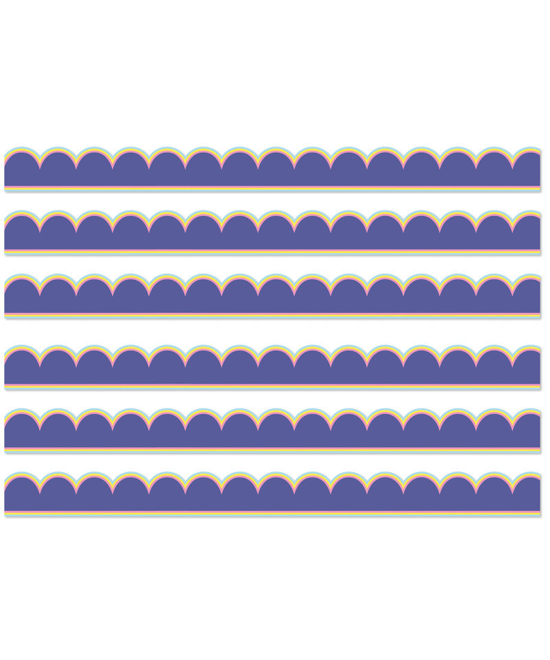 Add the perfect finishing touch to your bulletin board, cork board, white board, and other visual displays with Carson Dellosa's We Stick Together Purple Bulletin Board Borders! Each border pack features 13 strips of 3' x 3", purple scalloped border trim for a total of 39' to bring a rich pop of color to classroom décor and teaching supplies. Sold as 6 packs for a total of 78 strips (234 feet).