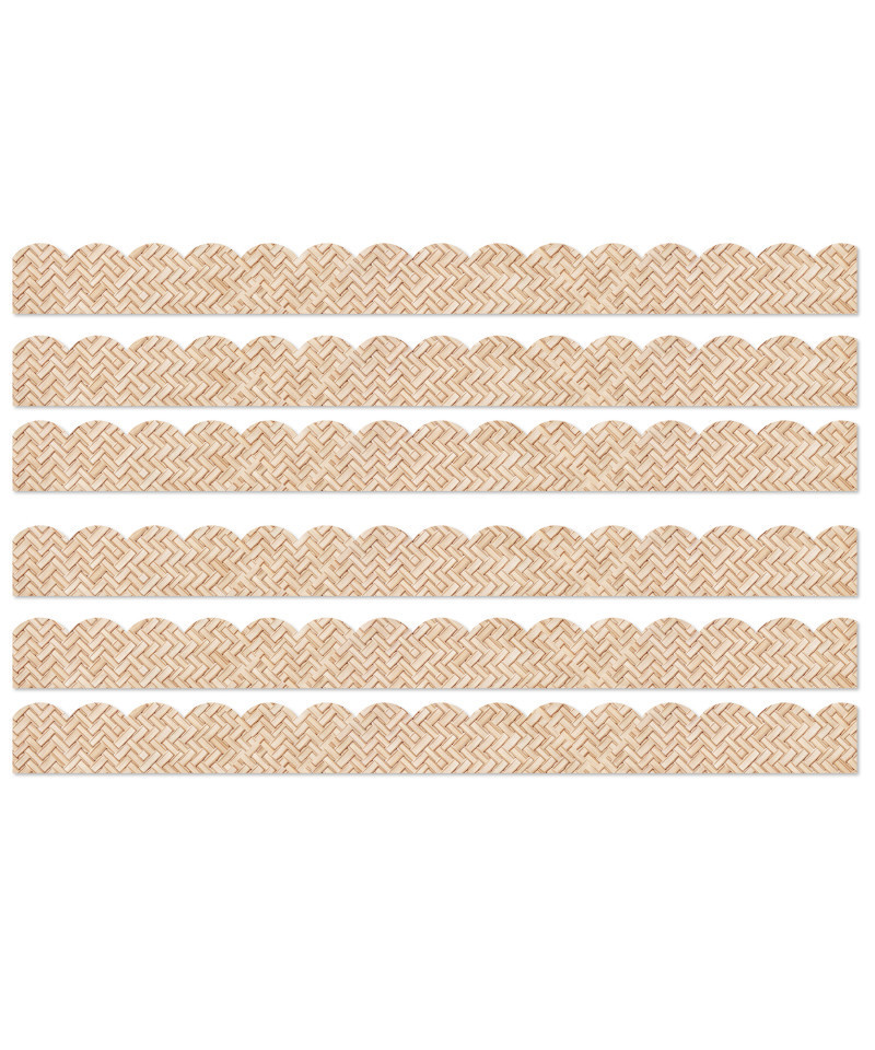 Create a warm and welcoming environment with Carson Dellosa True To You Woven Bamboo Bulletin Board Borders! Each 39-foot bulletin border pack features 13, 3' x 3" scalloped strips of neutral classroom borders to add natural classroom décor to your bulletin board, white board, and more to create calming, serene displays. Sold as 6 packs for a total of 78 strips (234 feet).