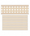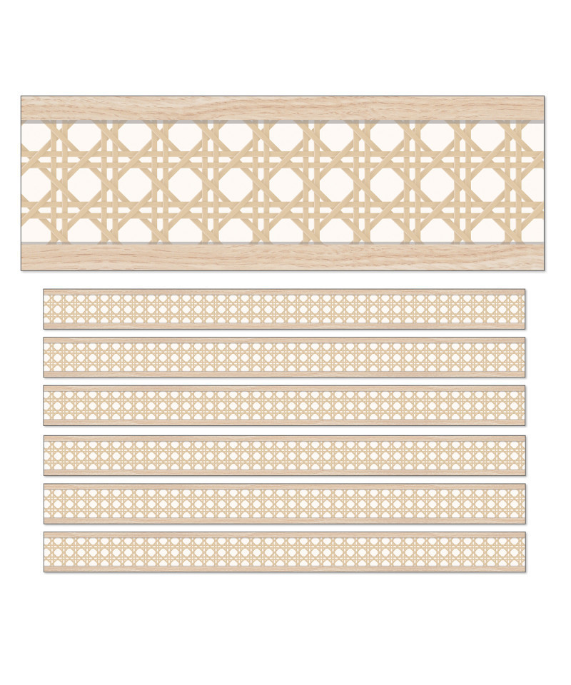 Weave natural textures and patterns into your classroom with Carson Dellosa True To You Woven Cane Bulletin Board Borders! Each 36-foot bulletin border pack features 12, 3' x 3" strips of neutral classroom borders to create the perfect frame or background for any area, allowing student work or displayed information to shine through. Sold as 6 packs for a total of 72 strips (216 feet).