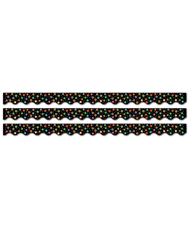- EYE-CATCHING DESIGN – This border's colorful dots on a black background creates a dazzling look that will add vibrancy to any bulletin board display.