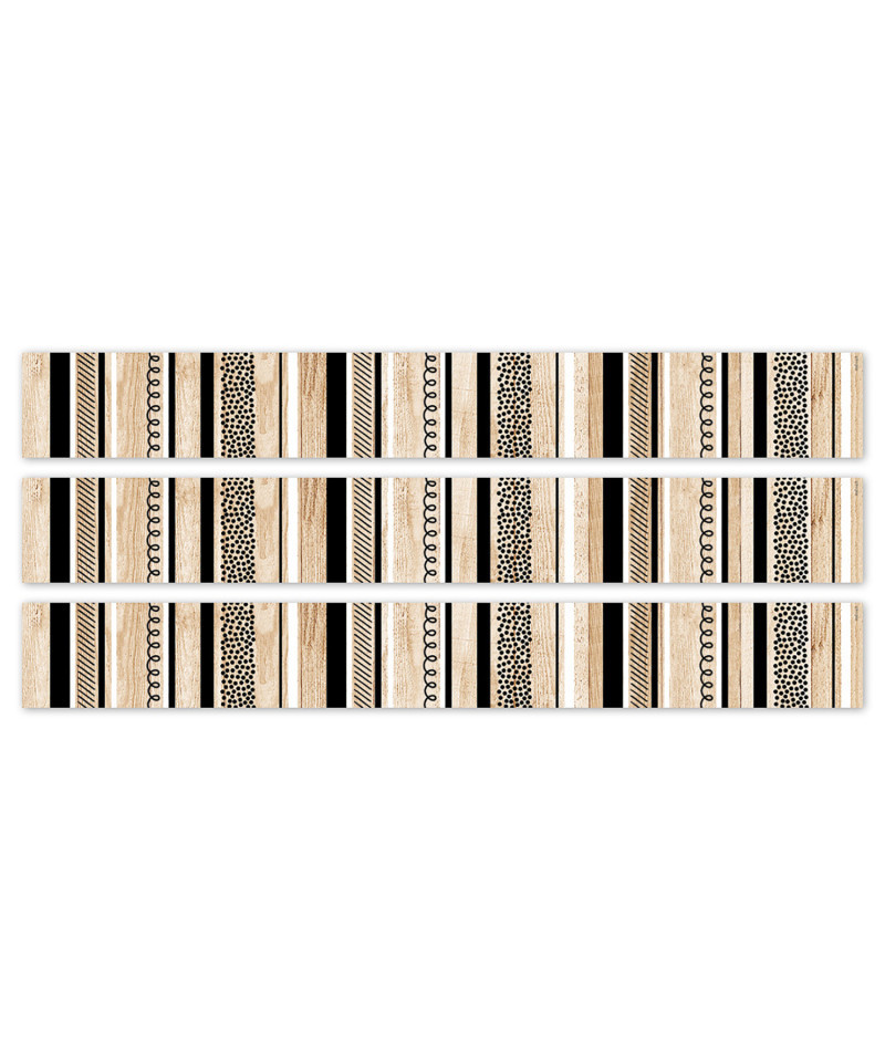 STYLISH DESIGN – This border features fun designs on a wood-patterned backdrop that will add a touch of style to any bulletin board display.