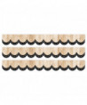Trim your bulletin boards in style with this Dotted Scallops on Wood EZ Border. The border features a natural wood look with strands of white dots on a black background. This EZ Border comes in smaller strips, which are easier to manage and store. Each package comes with enough border to complete 2 full bulletin boards. Each pack includes 24 strips measuring 3" x 24" for a total of 48 feet per package. Sold as 3 packs for a total of 72 strips (144 feet).