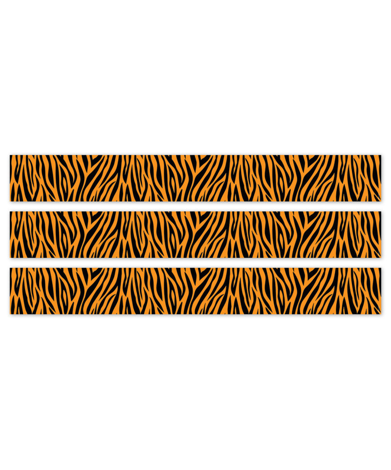 Add style to your bulletin boards with this Tiger Stripes EZ Border. While the vertical black stripes on the orange background help tigers hide in the wild, they are an eye-catching way to trim wall displays and perfect for use with other items in our Jungle Friends Collection. This EZ Border comes in smaller strips, which are easier to manage and store. Each package comes with enough border to complete 2 full bulletin boards. Each pack includes 24 strips measuring 3" x 24" for a total of 48 feet per package. Sold as 3 packs for a total of 72 strips (144 feet).