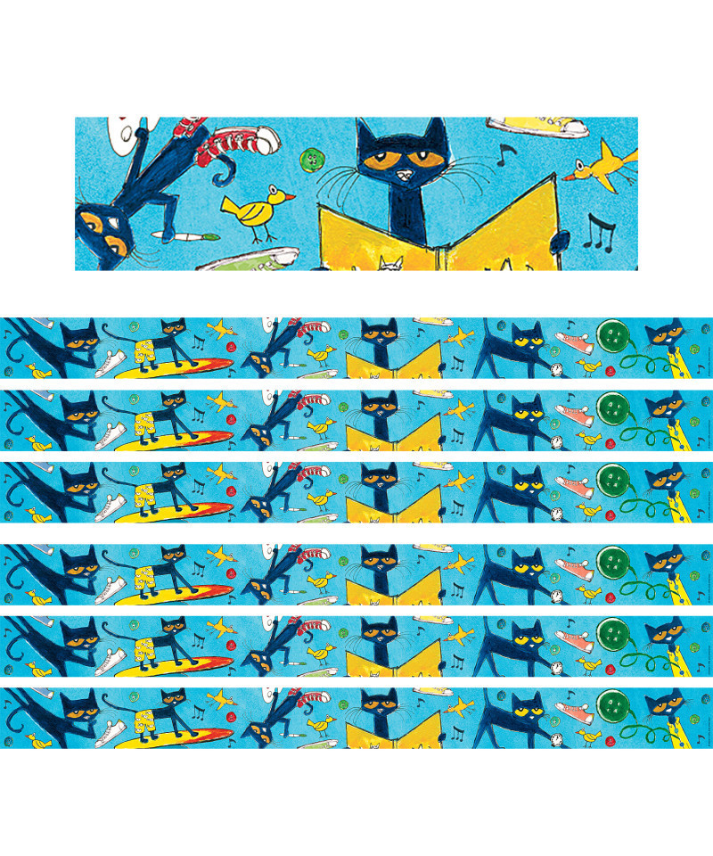 Use colorful border trim to liven up your classroom! Create fresh looks for bulletin boards, windows, walls, and class projects. Mix and match with coordinating products (stickers, notepads, awards, etc.) for a classroom theme. Each piece is 35" x 3". Color coordinate with other classroom styles. Each pack includes 12 pieces for a total of 35 feet. Sold as 6 packs for a total of 72 strips (210 feet).