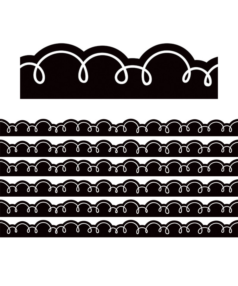 Use this black with white squiggles border trim to liven up your classroom! Create fresh looks for bulletin boards, windows, walls, and class projects. Mix and match with coordinating products (stickers, notepads, awards, etc.) for a classroom theme. Each pack has 12 pieces (3" x 35") for a total length of 35 feet of trim! Sold as 6 packs for a total of 72 pieces (210 feet).
