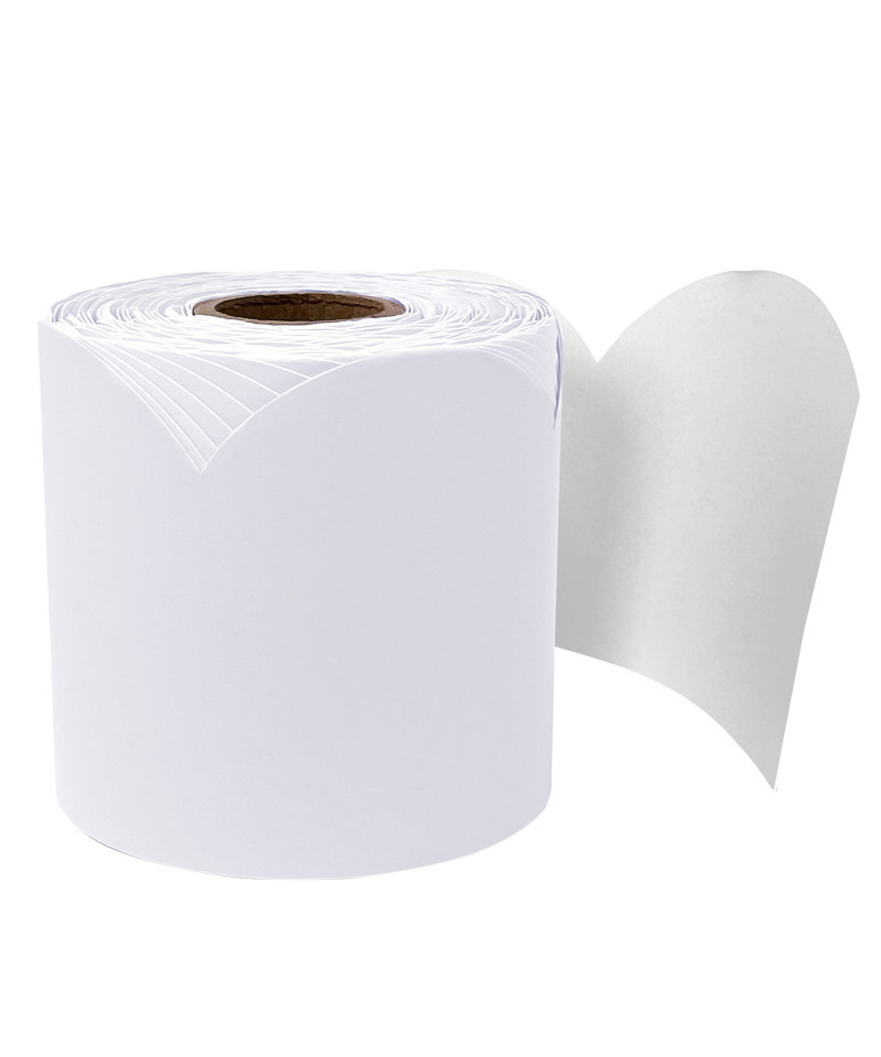 - Featuring 65 feet of scalloped, light gray bulletin board border