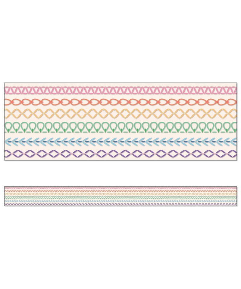 Add a rainbow of color to your classroom decor by decorating your learning space with Carson Dellosa's Crafty and Cool Rainbow Stitch Bulletin Board Borders! The border bundle includes 12 strips of bulletin board border with a boho rainbow stitch design on each border trim. Each strip of rainbow bulletin board border measures 3' x 3" for a total of 36ft to dress up lockers, cubbies, bulletin board, cork board, and white board displays with ease. The classroom border is printed on thick but flexible bulletin board paper that you can cut and layer to add dimension to any display.