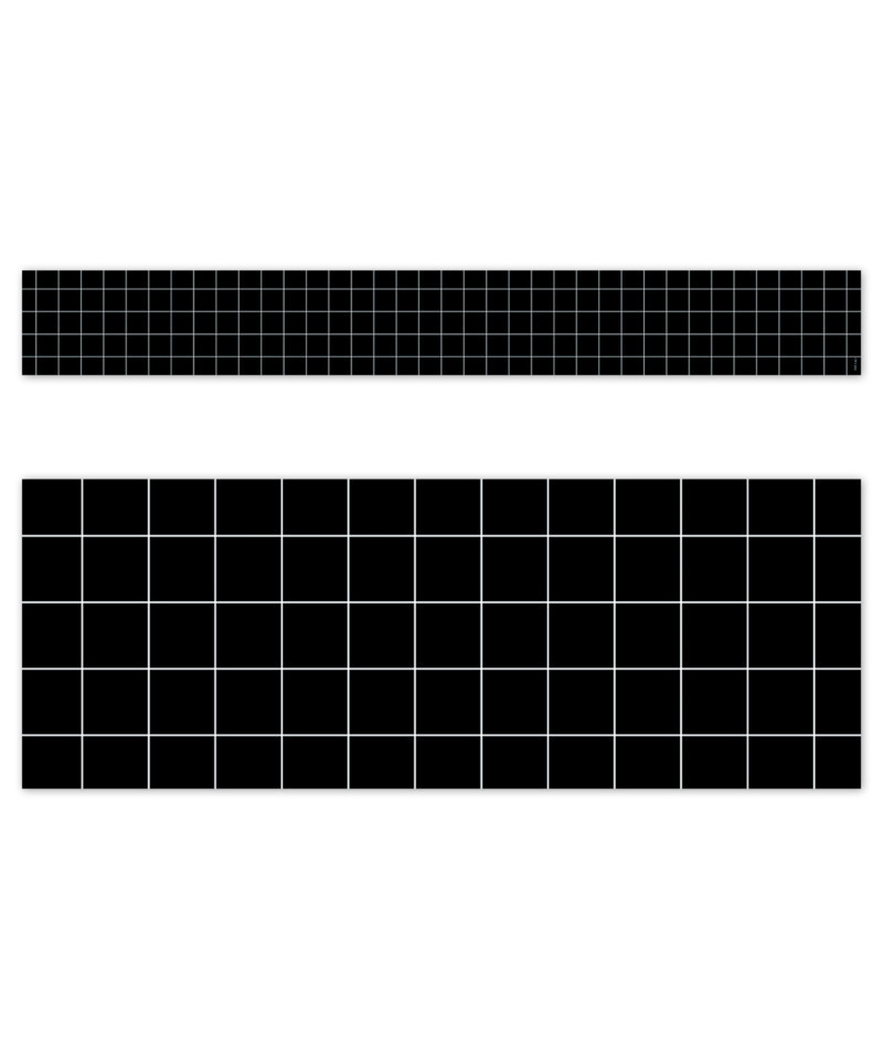 Frame your bulletin boards in style with this Window Pane on Black EZ Border. Use the border by itself or layer it with another border for a unique look. Perfect for use on bulletin boards in a wide variety of classroom, office, and school settings. Each package comes with enough borders to complete 2 full bulletin boards. Each pack includes 24 strips measuring 24" each for a total of 48 feet.
