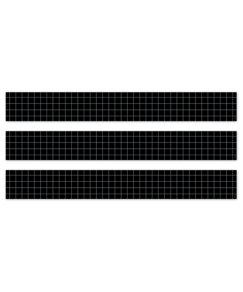 Frame your bulletin boards in style with this Window Pane on Black EZ Border. Use the border by itself or layer it with another border for a unique look. Perfect for use on bulletin boards in a wide variety of classroom, office, and school settings. Each package comes with enough borders to complete 2 full bulletin boards. Each pack includes 24 strips measuring 24" each for a total of 48 feet. Sold as 3 packs for a total of 72 strips (144 feet).