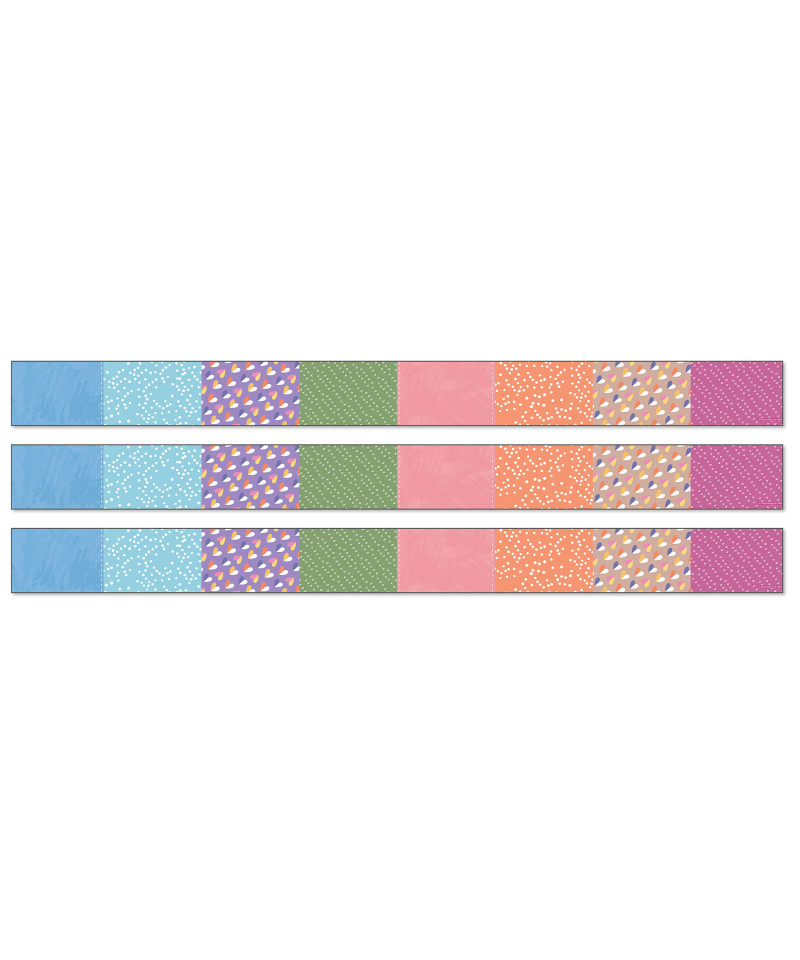 Enhance your classroom décor with seamless style using Carson Dellosa's Crafty and Cool Patchwork Bulletin Board Borders! The border bundle includes 12 strips of bulletin board border with an assortment of colorful quilt designs on each border trim, making it the perfect addition to farmhouse decor, and arts and crafts spaces! Each strip of border measures 3' x 3" for a total of 36ft to dress up lockers, cubbies, bulletin board, cork board, and white board displays with ease. The classroom border is printed on thick but flexible bulletin board paper that you can cut and layer to add dimension to any display. Sold as 3 packs, with 36 ft per pack.