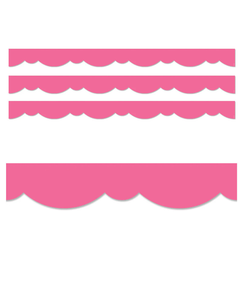 A fun, fresh twist on a solid border! This Pink Stylish Scallops EZ Border features a playful double scallop design to create a neat and easy way to edge any bulletin board or classroom display. Also great for use on bulletin boards in an office, a church, or a college dorm. With its versatile scallop design, this bulletin board border can be used alone to create a basic look or layered with another border for a more designer look. These EZ borders come in smaller strips, which are easier to manage and store. Each package comes with enough borders to complete 2 full bulletin boards. Use this pink EZ border for seasonal and holiday displays for Valentine's Day, Easter, spring, and Breast Cancer Awareness Month. Sold as 3 packs. Each pack includes 24 strips measuring 2-3/4" x 24" for a total of 48 feet.