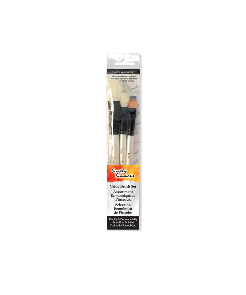 For students, amateurs, and professionals alike, Simply Simmons Brushes offer excellent performance, dependability, and value — all at one low price, no matter what the size. They are handmade by skilled craftsmen to meet the same high standards that artists have come to expect from the Robert Simmons name. Each set includes 3 brushes.