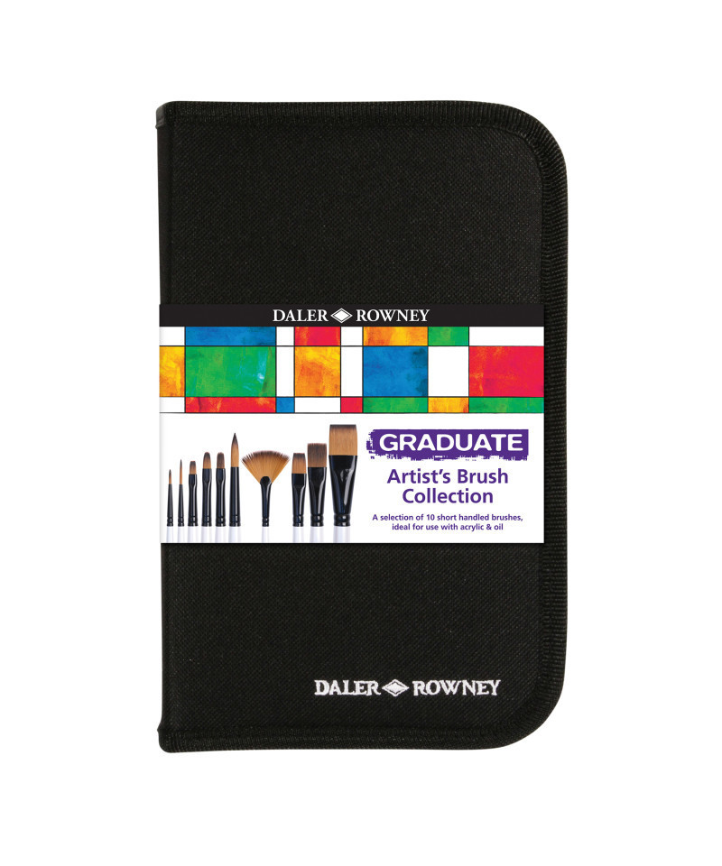 Daler-Rowney Graduate paintbrushes are an amazing choice for students & beginners, offering top-notch quality without breaking the bank. Made with durable synthetic bristles, these brushes hold their shape & give you precise control for smooth, even strokes. Plus, with a wide variety of brush types, you can easily explore different techniques & styles, making every painting session a creative adventure. Since 1783, Daler-Rowney has inspired professional artists, art students & hobbyists to embrace their creativity. We believe in producing art supplies that are sustainable, qualitative, durable, accessible & affordable. The Graduate product line is a premier collaboration between three renowned art supply brands—Canson, Lyra, and Daler-Rowney—offering a comprehensive range of high-quality art materials. Featuring an array of supplies including sketchbooks, pencils, and paints, each product is designed to enhance technical skill and artistic expression. Ideal for art students and teachers alike, the Graduate range provides the tools necessary for fostering creativity in the classroom. Short handle brushes include Fan (Size 2), Flat Wash (Size 3/4in), Flat Shader (Size 4 & 10), Angle Shader (Size 1/2in), Script (Size 3), Round (Size 1, 4, & 8).