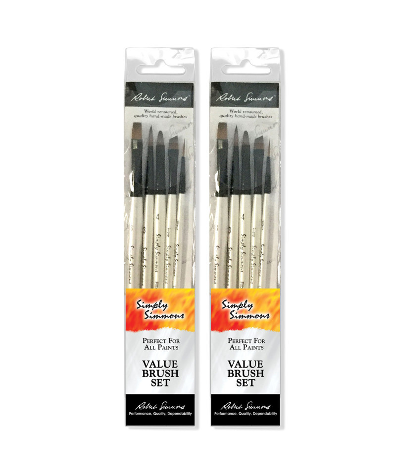 Discover the perfect brush for every artistic need with Simply Simmons! Our economically priced, handmade brushes are crafted to work seamlessly with all types of paints. Choose from our extensive collection of brushes, including short handles for Acrylic & Mixed Media, long handles for Oil & Acrylic, and XL brushes for those grand painting projects. Elevate your art with a brush that's as versatile as your creativity! Since 1783, Daler-Rowney has inspired professional artists, art students & hobbyists to embrace their creativity. We believe in producing art supplies that are sustainable, qualitative, durable, accessible & affordable. Each set includes Flat (Size 8), Round (Size 3), Filbert (Size 4), Angle Shader (Size 1/8in), Liner (Size 10/0). Sold as 2 sets for a total of 10 brushes.