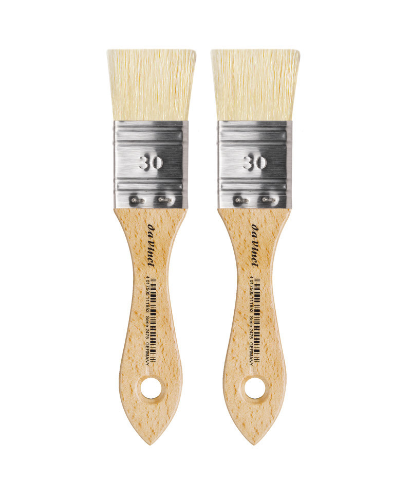 da Vinci varnish & priming mottler brush with extra short hog bristle and natural lacquered handle is made for the demands of oil and acrylic painting. Professional quality hog bristle produces a controlled stiff stroke which is great for blocking out large areas of paint. The bristle is set by hand, not cut therefore brush retains its natural flags or split ends for even paint distribution. This series is ideal for priming, gesso, underpainting, varnishing, graining and transparent painting with great control. Sold as a pack of 2.
