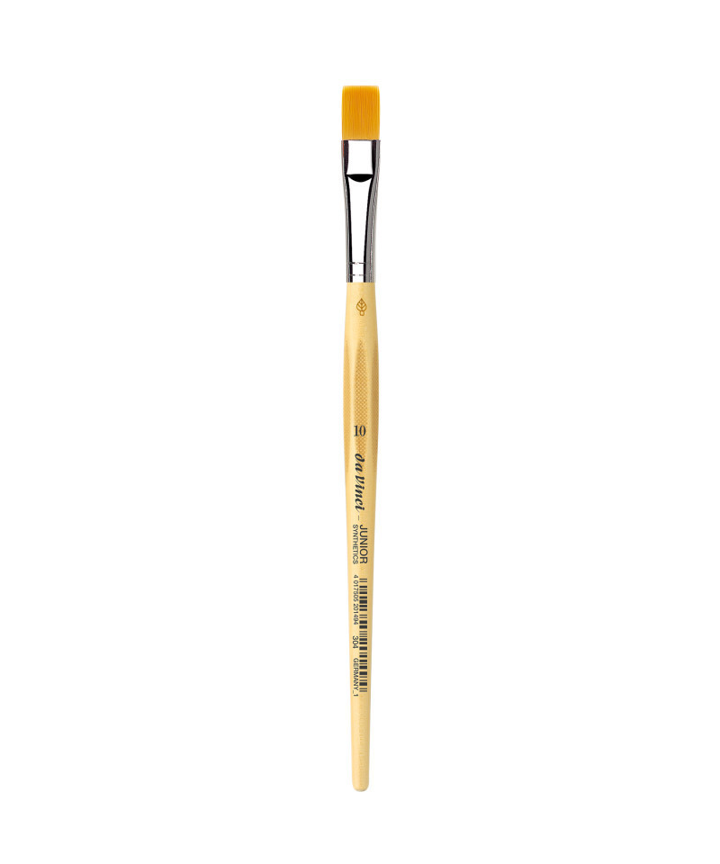 da Vinci Junior art brushes are a well built, easy to use brush developed to improve the quality of brushes for beginners. They can be used with any type of paint and are easy to clean. The "hold it like a pencil" handle shape makes for a comfortable and familiar grip. The brush won't roll away if dropped. It has a reinforced brush head for heavy wear that will always hold its edge. Unlike most cheaper brushes, da Vinci junior features a "rust resistant" seamless polished ferrule. Made in Germany. Sustainable wood handles. Vegan. Eco-Friendly.