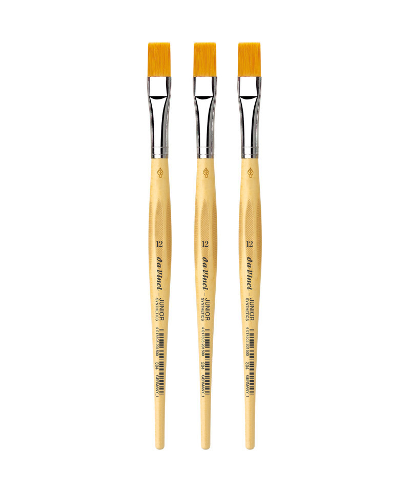 da Vinci Junior art brushes are a well built, easy to use brush developed to improve the quality of brushes for beginners. They can be used with any type of paint and are easy to clean. The "hold it like a pencil" handle shape makes for a comfortable and familiar grip. The brush won't roll away if dropped. It has a reinforced brush head for heavy wear that will always hold its edge. Unlike most cheaper brushes, da Vinci junior features a "rust resistant" seamless polished ferrule. Made in Germany. Sustainable wood handles. Vegan. Eco-Friendly. Sold as a pack of 3.