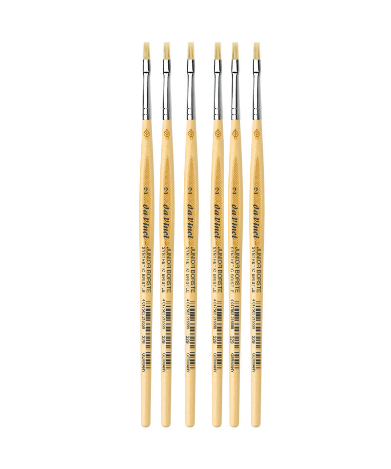 da Vinci JUNIOR BORSTE Synthetic Student Brush, Synthetic, Tempera, Flat, Series 329, Size 2, Pack of 6