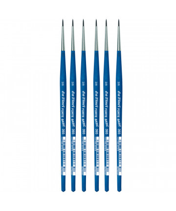 da Vinci Junior art brushes are a well built, easy to use brush developed to improve the quality of brushes for beginners. They can be used with any type of paint and are easy to clean. The "hold it like a pencil" handle shape makes for a comfortable and familiar grip. The brush won't roll away if dropped. It has a reinforced brush head for heavy wear that will always hold its edge. Unlike most cheaper brushes, da Vinci junior features a "rust resistant" seamless polished ferrule. Made in Germany. Sustainable wood handles. Vegan. Eco-Friendly. Sold as a pack of 6.