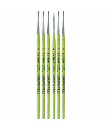 da Vinci Junior art brushes are a well built, easy to use brush developed to improve the quality of brushes for beginners. They can be used with any type of paint and are easy to clean. The "hold it like a pencil" handle shape makes for a comfortable and familiar grip. The brush won't roll away if dropped. It has a reinforced brush head for heavy wear that will always hold its edge. Unlike most cheaper brushes, da Vinci junior features a "rust resistant" seamless polished ferrule. Made in Germany. Sustainable wood handles. Vegan. Eco-Friendly. Sold as a pack of 6.