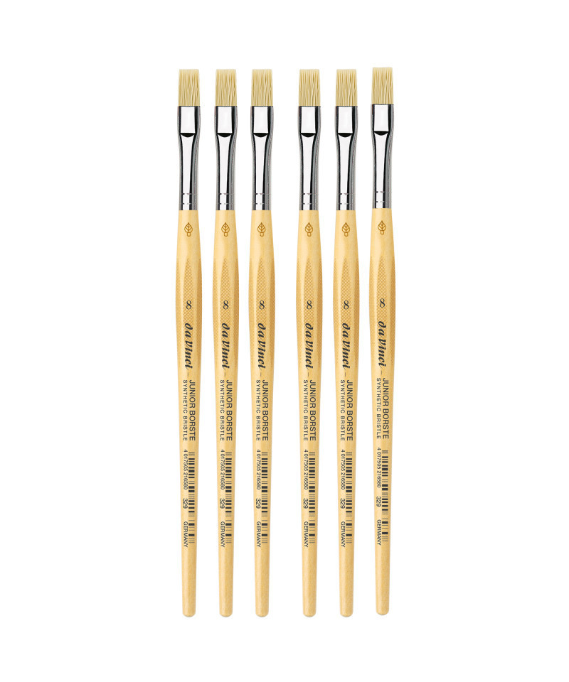 da Vinci JUNIOR BORSTE Synthetic Student Brush, Synthetic, Tempera, Flat, Series 329, Size 8, Pack of 6
