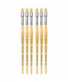 da Vinci Junior art brushes are a well built, easy to use brush developed to improve the quality of brushes for beginners. They can be used with any type of paint and are easy to clean. The "hold it like a pencil" handle shape makes for a comfortable and familiar grip. The brush won't roll away if dropped. It has a reinforced brush head for heavy wear that will always hold its edge. Unlike most cheaper brushes, da Vinci junior features a "rust resistant" seamless polished ferrule. Made in Germany. Sustainable wood handles. Vegan. Eco-Friendly. Sold as a pack of 6.
