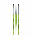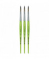 Thanks to a specifically developed, flexible, grey synthetic fiber we have created a hobby and school painting brush, which fascinates not only by its interesting look but also by its attractive price. This innovative product offers better performance than the traditional school brush with natural hair when it comes to stroke control and color absorbing capacity. The brush features a green, matte handle with seamless, rust-proof aluminum ferrules. Made in Germany. 100% Vegan. Sold as a pack of 3.