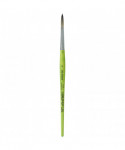 Thanks to a specifically developed, flexible, grey synthetic fiber we have created a hobby and school painting brush, which fascinates not only by its interesting look but also by its attractive price. This innovative product offers better performance than the traditional school brush with natural hair when it comes to stroke control and color absorbing capacity. The brush features a green, matte handle with seamless, rust-proof aluminum ferrules. Made in Germany. 100% Vegan.